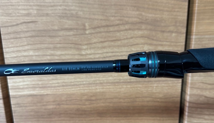 ロッドをまじまじと眺めると、エメラルダスのシンボルカラーの「エメラルドグリーン」を散りばめながら、マッドブラック基調になっていて、個人的には好きなデザインですね(^^)